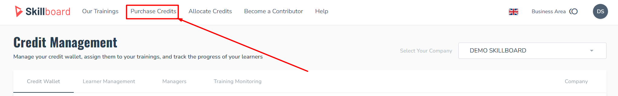 1) To unlock the purchase of a lux-Airport training course, go to your ‘Business Area’, then to the ‘Credit Wallet’ tab, and click on ‘Buy credits’. 2) Next, search for the lux-Airport training you are interested in the drop-down list, select the ...