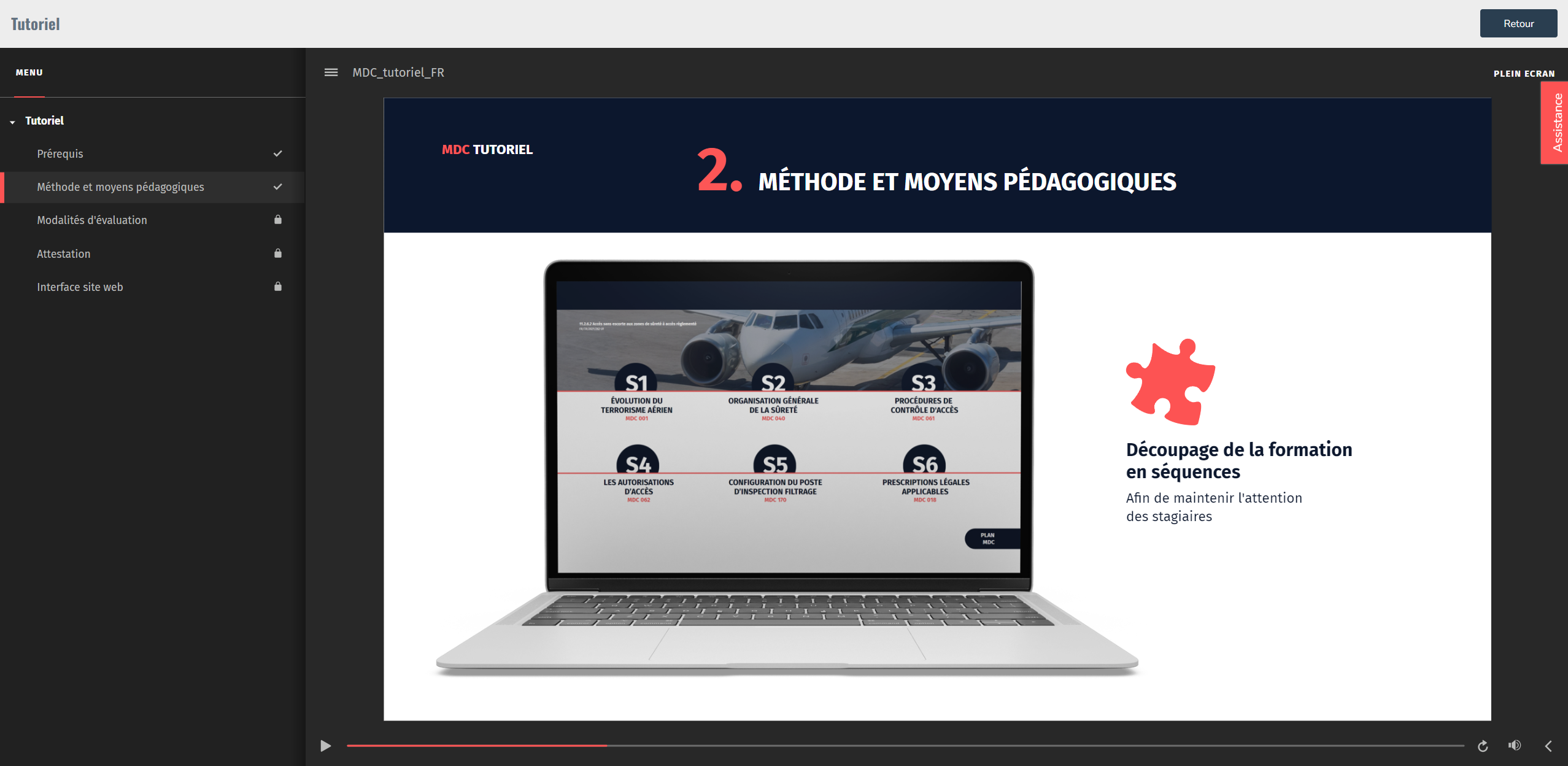 Vous trouverez sur la colonne de gauche le suivi du module avec les parties déjà réalisées symbolisées par une coche.